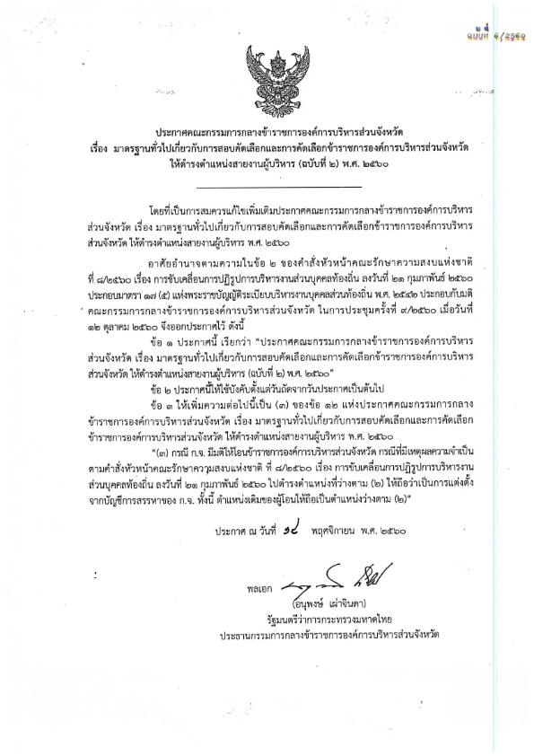 มาตรฐานทั่วไปเกี่ยวกับการสอบคัดเลือกและการคัดเลือก ขรก.อบจ.ให้ดำรงตำแหน่งสายงานผู้บริหาร (ฉบับที่ 2) พ.ศ. 2560