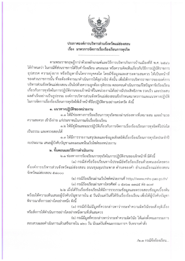 มาตรการจัดการเรื่องร้องเรียนการทุจริต