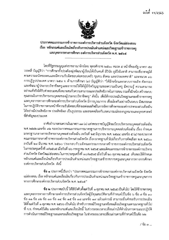 หลักเกณฑ์และเงื่อนไขเกี่ยวกับการประเมินตำแหน่งและวิทยฐานะข้าราชการครูและบุคลากรทางการศึกษา องค์การบริหารส่วนจังหวัด พ.ศ. 2565