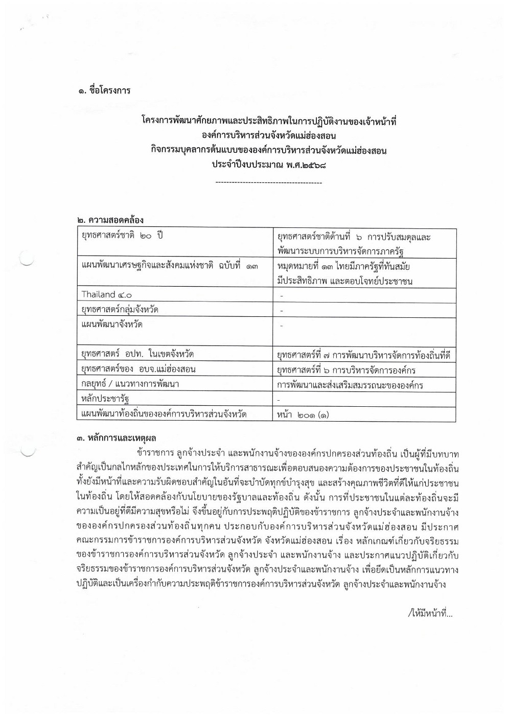 โครงการบุคลากรต้นแบบขององค์การบริหารส่วนจังหวัดแม่ฮ่องสอน ประจำปีงบประมาณ 2568