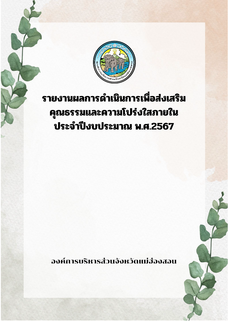 รายงานผลการดำเนินการเพื่อส่งเสริมคุณธรรมและความโปร่งใสภายในขององค์การบริหารส่วนจังหวัดแม่ฮ่องสอน ประจำปีงบประมาณ พ.ศ. 2567