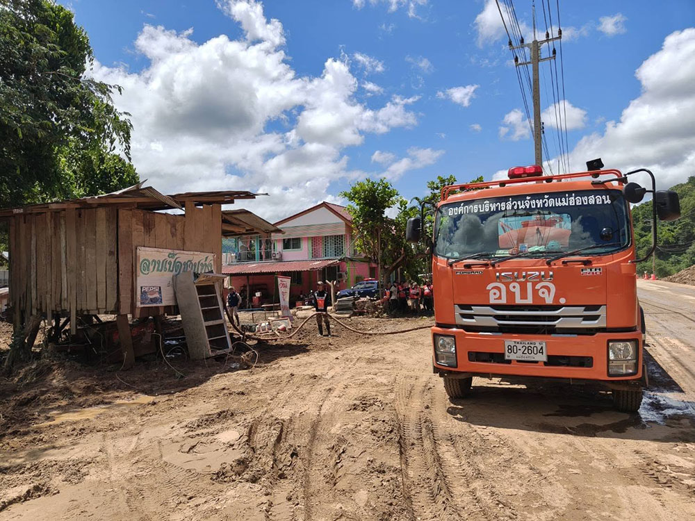 ศูนย์บัญชาการป้องกันและแก้ไขปัญหาวาตภัย อุทกภัย น้ำป่าไหลหลาก และดินโคลนถล่ม อบจ.แม่ฮ่องสอน ภายใต้การอำนวยการของนายอัครเดช วันไชยธนวงศ์ นายกองค์การบริหารส่วนจังหวัดแม่ฮ่องสอน เครื่องจักรกล พร้อมเจ้าหน้า ของ อบจ.แม่ฮ่องสอน ยังคงปฏิบัติงานด้านการฟื้นฟู ที่บ้านผาบ่อง หมู่ที่ 12 ตำบลผาบ่อง อำเภอเมือง จังหวัดแม่ฮ่องสอน ซึ่งเป็นพื้นที่ที่ได้รับผลกระทบจากเหตุอุทกภัย น้ำป่าไหลหลาก จากอิทธิพลพายุคาจิกิ โดยปัจจุบันสามารถล่างทำความสะอาดสถานที่ / บ้านเรือนประชาชนได้บางส่วน เคลียร์ และตัดต้นไม้ ขอนไม้ใหญ่ ที่ลอยลำมากับน้ำ วางกองเป็นจุด และเตรียมนำรถยกมาดำเนินการย้ายไปยังจุดที่กำหนด เพื่อบรรเทาความเดือดร้อนให้แก่ประชาชน อย่างต่อเนื่อง เมื่อวันที่ 5 กันยายน 2568