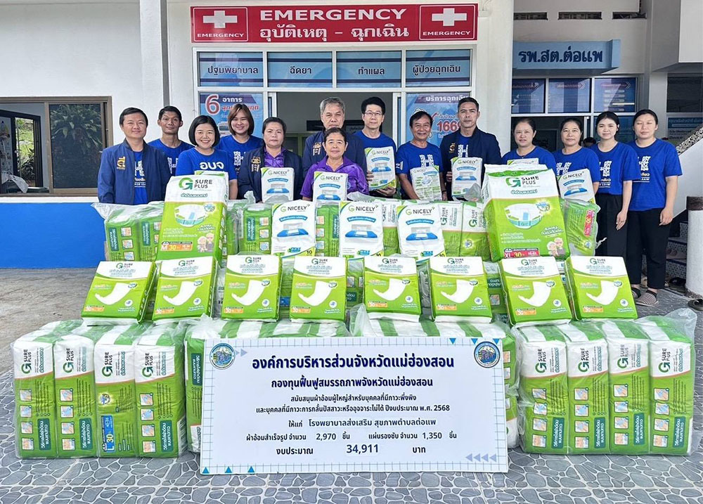 นายวิเชียร บุญระชัยสวรรค์ ส.อบจ. อำเภอขุนยวม เขต 1 และ นายวุฒิ ริยะนา ส.อบจ.อำเภอขุนยวม เขต 2 เป็นตัวแทนนายกองค์การบริหารส่วนจังหวัดแม่ฮ่องสอน พร้อมด้วยเจ้าหน้าที่กองสาธารณสุข อบจ.แม่ฮ่องสอน ร่วมลงพื้นที่เพื่อส่งมอบผ้าอ้อมผู้ใหญ่และแผ่นรองซับการขับถ่าย และแผ่นเสริมซึมซับการขับถ่าย ให้กับหน่วยจัดบริการในพื้นที่ ที่ขอรับการสนับสนุนงบประมาณจากกองทุนฟื้นฟูสมรรถภาพจังหวัดแม่ฮ่องสอน เพื่อส่งมอบวัสดุให้แก่บุคคลที่มีภาวะพึ่งพิงและบุคคลที่มีปัญหาภาวะการกลั้นปัสสาวะหรืออุจจาระไม่ได้ ส่งมอบ ผ้าอ้อมผู้ใหญ่ จำนวน 2,970 ชิ้น แผ่นรองซับการขับถ่าย จำนวน 270 ชิ้น / แผ่นเสริมซึมซับการขับถ่าย จำนวน 1,080 ชิ้น เป็นเงินงบประมาณ 34,911 บาท / เยี่ยมบ้านผู้ที่มีภาวะพึ่งพิง จำนวน 5 ราย เมื่อวันที่ 10 ตุลาคม 2568 ณ รพ.สต.ต่อแพ อ.ขุนยวม จ.แม่ฮ่องสอน