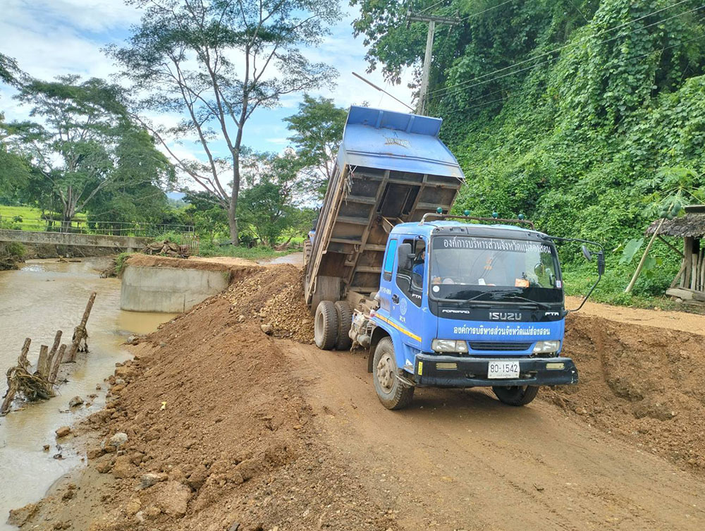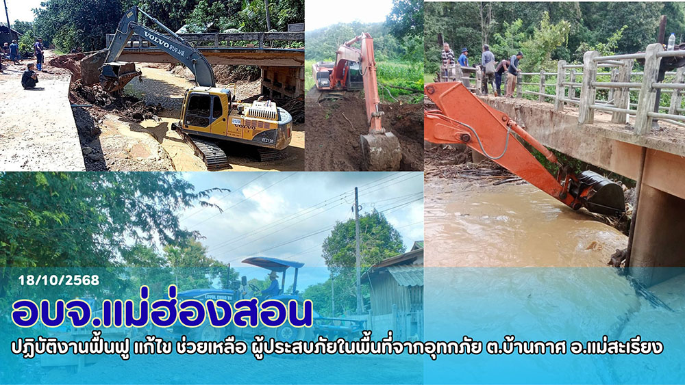 โดย นายก อบจ.แม่ฮ่องสอน ได้สั่งการให้เครื่องจักรกล (รถขุดไฮดรอลิก , รถไถฟาร์ม , รถบรรทุกชานต่ำ และรถยนต์บริการ) พร้อมพนักงานขับ เร่งปฏิบัติงานในพื้นที่ เพื่อแก้ไขปัญหาความเดือดร้อนของประชาชนในการใช้เส้นทางคมนาคมระหว่างหมู่บ้าน เบื้องต้นเครื่องจักรกล พร้อมพนักงานขับได้ดำเนินการถมคอสะพาน ขุดลอกเปลี่ยนทางน้ำเพื่อไม่ให้น้ำชนคอสะพาน ปรับเปลี่ยนเส้นทางน้ำและวางกล่องเกเบี้ยน ป้องกันไม่ให้น้ำกัดเซาะถนน และ สร้างความมั่นคงให้กับโครงสร้าง พร้อมทั้ง กำจัดดินสไลด์ที่กีดขวางถนน ทั้งนี้ เพื่อให้ประชาชนสามารถสัญจรผ่านไปมาได้อย่างปลอดภัยในโอกาสต่อไป เมื่อวันที่ 15 ตุลาคม 2568